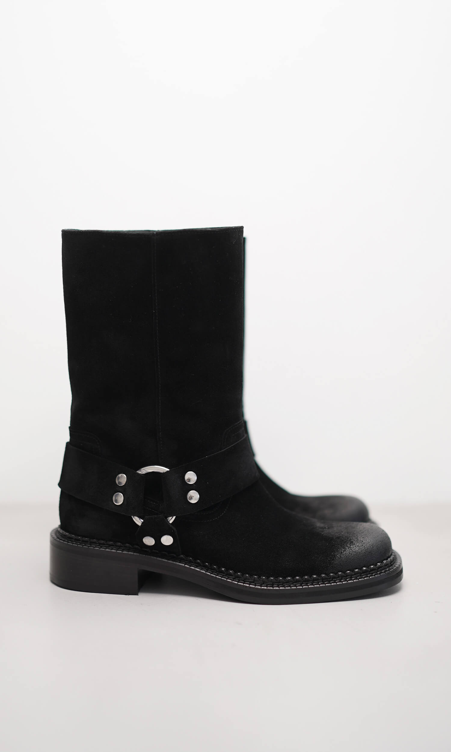 Dieser kniehohe Stiefel aus hochwertigem Veloursleder setzt auf klare Formen und dezente Details. Das leicht gewachste Finish an der Spitze verleiht dem Design eine subtile Used-Optik, während die robuste Sohle mit feiner Rahmennaht für Stabilität und Eleganz sorgt. Der schlanke Schaft sitzt angenehm am Bein und lässt sich vielseitig zu Röcken, Kleidern oder schmalen Hosen kombinieren. Ein stilvoller Allrounder für kühle Tage – authentisch, hochwertig und immer im Trend.
