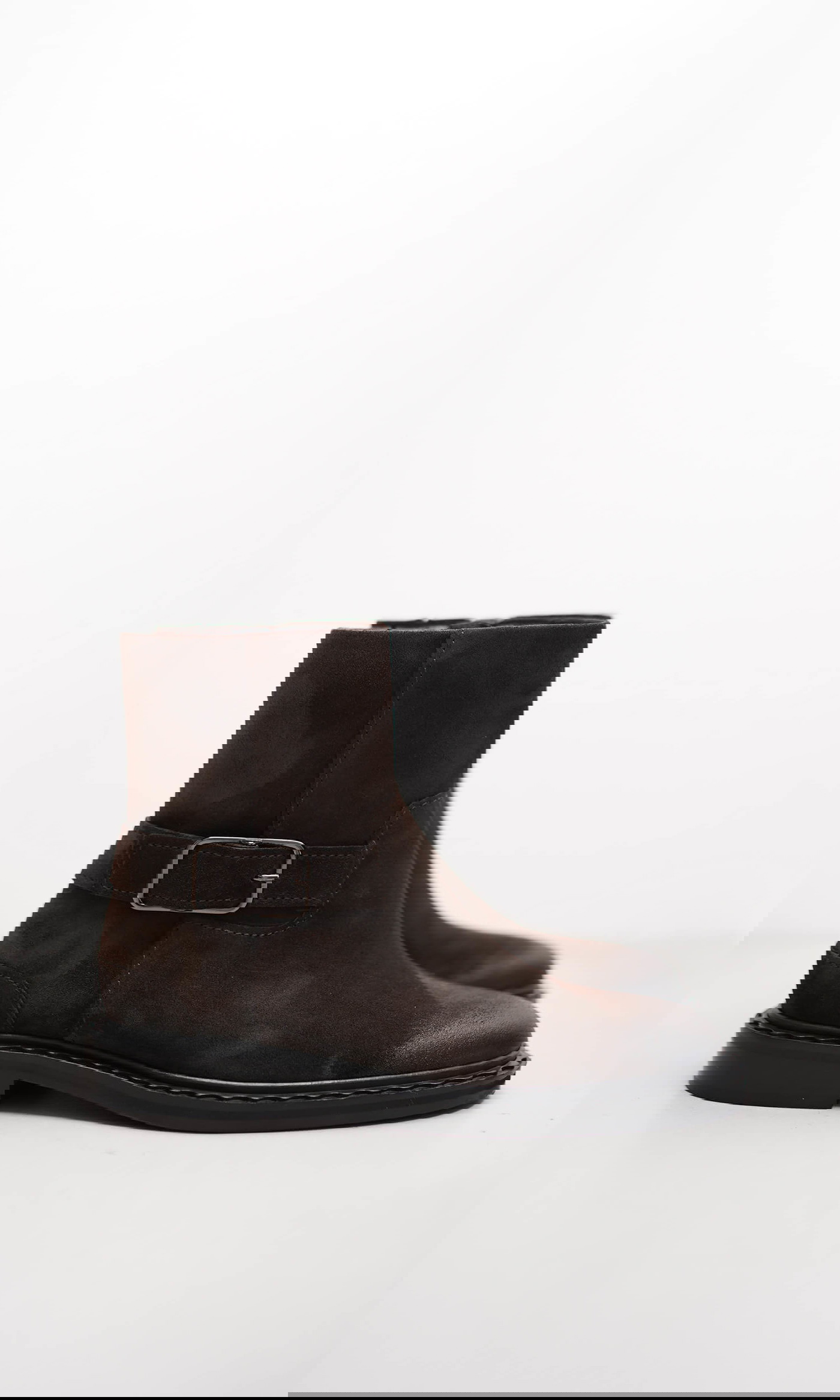 Stilvoll, modern und unkompliziert: Diese Stiefelette aus dunkelbraunem Veloursleder vereint klare Linien mit einem markanten Akzent. Die silberfarbene Metallschnalle an der Seite verleiht dem schlichten Design eine ausdrucksstarke Note. Dank seitlichem Reißverschluss lässt sich der Schuh bequem an- und ausziehen, während die robuste Leder-Gummisohle für angenehmen Tragekomfort sorgt. Ein vielseitiger Allrounder für herbstliche City-Looks oder lässige Winter-Outfits – perfekt zu Jeans, Stoffhose oder Strickkleid.