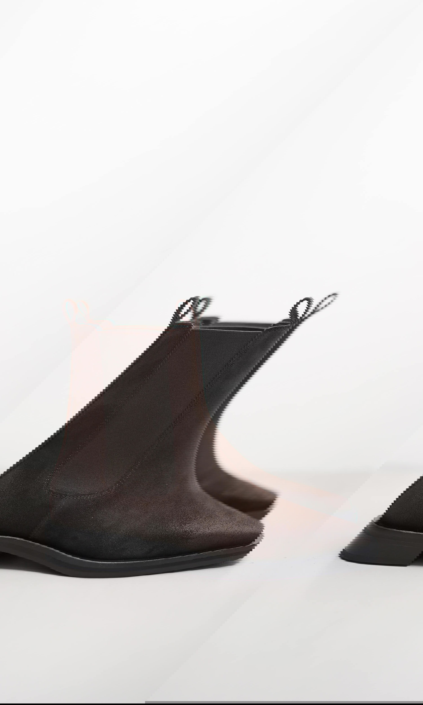 Schlichte Eleganz mit weicher Note: Diese minimalistsche Stiefelette aus dunkelbraunem Veloursleder besticht durch ihre feine Linienführung und eine moderne, feminine Ausstrahlung. Die schmale Spitze unterstreicht die schlanke Silhouette und verleiht dem Modell zeitlosen Stil. Die elastischen Stretcheinsätze sorgen für bequemen Einstieg und eine perfekte Passform am Knöchel. Das samtige Veloursleder bringt Wärme und Tiefe ins Design und wirkt durch das gewachste Finish an der Schuhspitze gleichermaßen elegant wie sportlich. Ein idealer Allrounder für dezente, stilvolle Herbst- und Winterlooks.