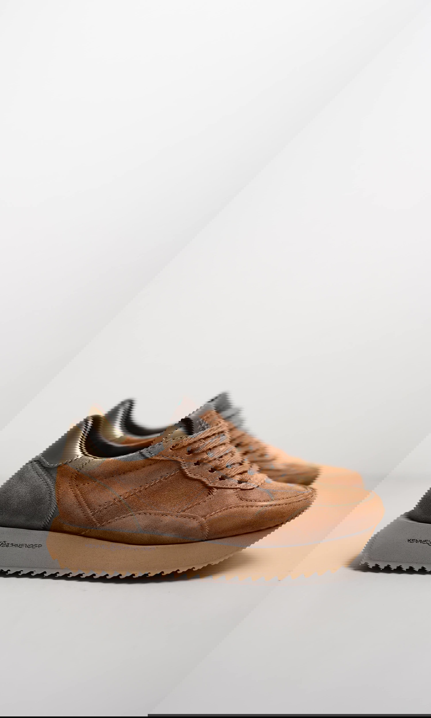Dieser Sneaker vereint sportliches Design mit edlem Finish – ein echter Allrounder für stilvolle Casual-Looks. Das weiche Veloursleder in warmem Camel-Ton trifft auf glänzende Metallic-Details an Ferse und Lasche und verleiht dem Schuh einen modernen Twist. Die markante Plateausohle mit Zackenprofil sorgt für angenehmen Tragekomfort und eine dynamische Silhouette. Ob zur Jeans, zum Rock oder als Bruch zum femininen Kleid – dieser Sneaker verleiht jedem Outfit eine coole Note und beweist, dass Komfort und Stil kein Widerspruch sind.
