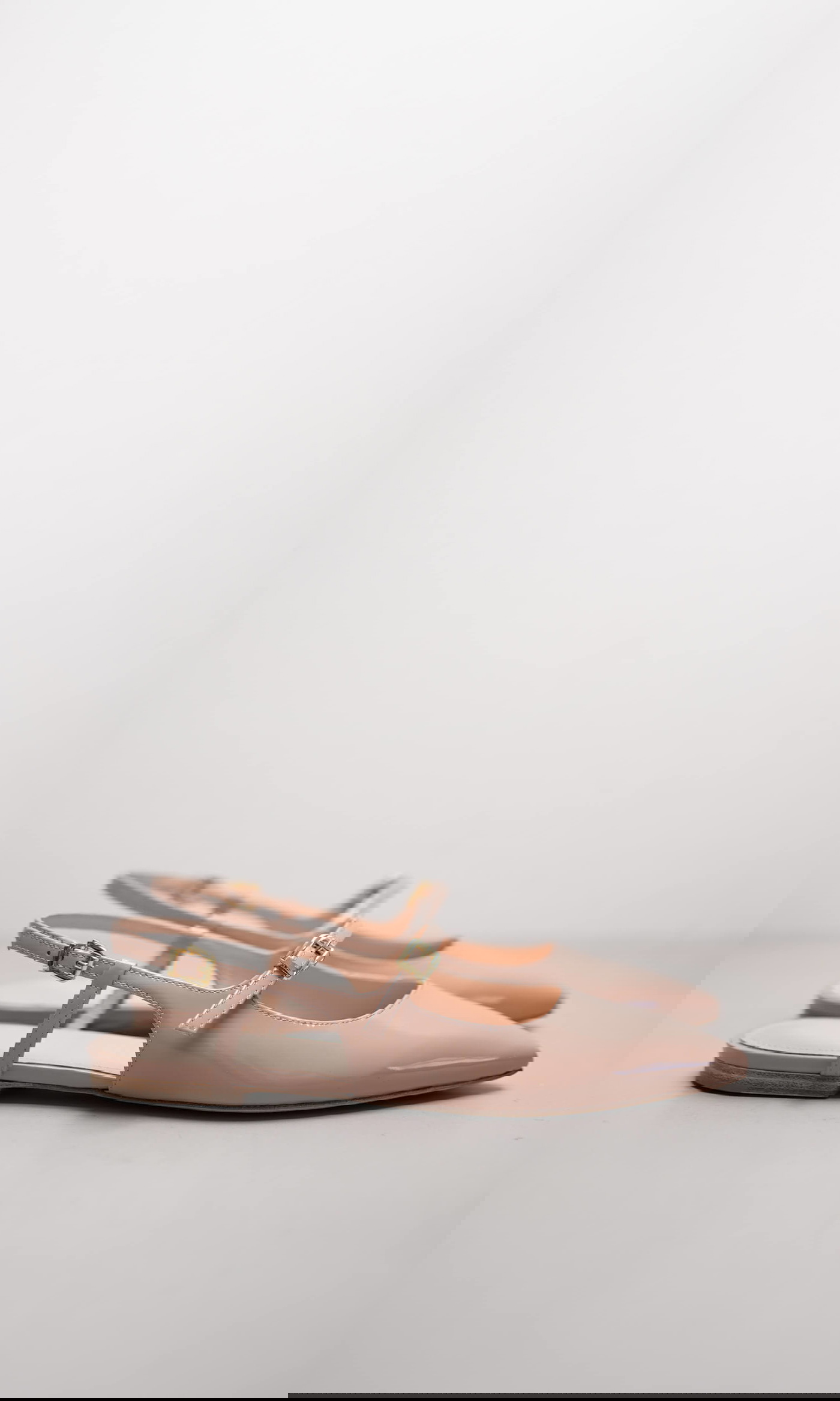 Der Ballerina GRETA präsentiert sich in elegantem Skin-Ton und glänzendem Softlack-Finish. Das spitz zulaufende Design wirkt besonders feminin, während der filigrane Fersenriemen mit goldener Schnalle für sicheren Halt sorgt. Die flache Ledersohle verleiht einen leichten, komfortablen Auftritt – ein vielseitiger Begleiter für schlichte Business-Looks wie auch moderne Everyday-Outfits.