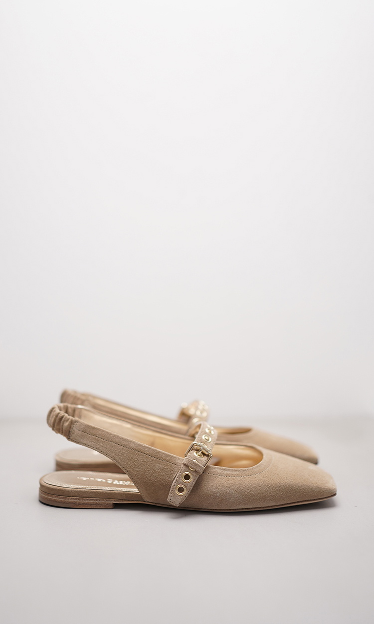 In der kommenden Saison erhalten die klassischen Ballerinas ein modernes Update! Bleiben Sie modisch informiert mit unserem charmanten Modell LEILA. Hellbraunes Veloursleder und die mandelförmige Silhouette sorgen für einen modernen Look. Die charmanten Riemchen bringen Lässigkeit in den Look. In Kombination zu weitgeschnittenen Hosen gefällt uns das Modell besonders gut.