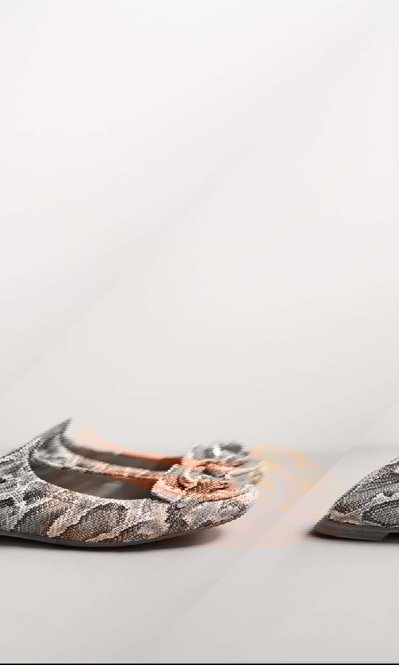 Dieser stilvolle Ballerina begeistert mit einem edlen Diamond-Boa-Print in natürlichen Beigetönen. Die weiche, anschmiegsame Lederqualität sorgt für angenehmen Tragekomfort, während die dekorative, goldfarbene Schnalle dem Design eine luxuriöse Note verleiht. Die flache Silhouette macht den Ballerina zum vielseitigen Stylingpartner – perfekt für feminine Looks im Alltag oder als eleganter Akzent zu schlichten Outfits.