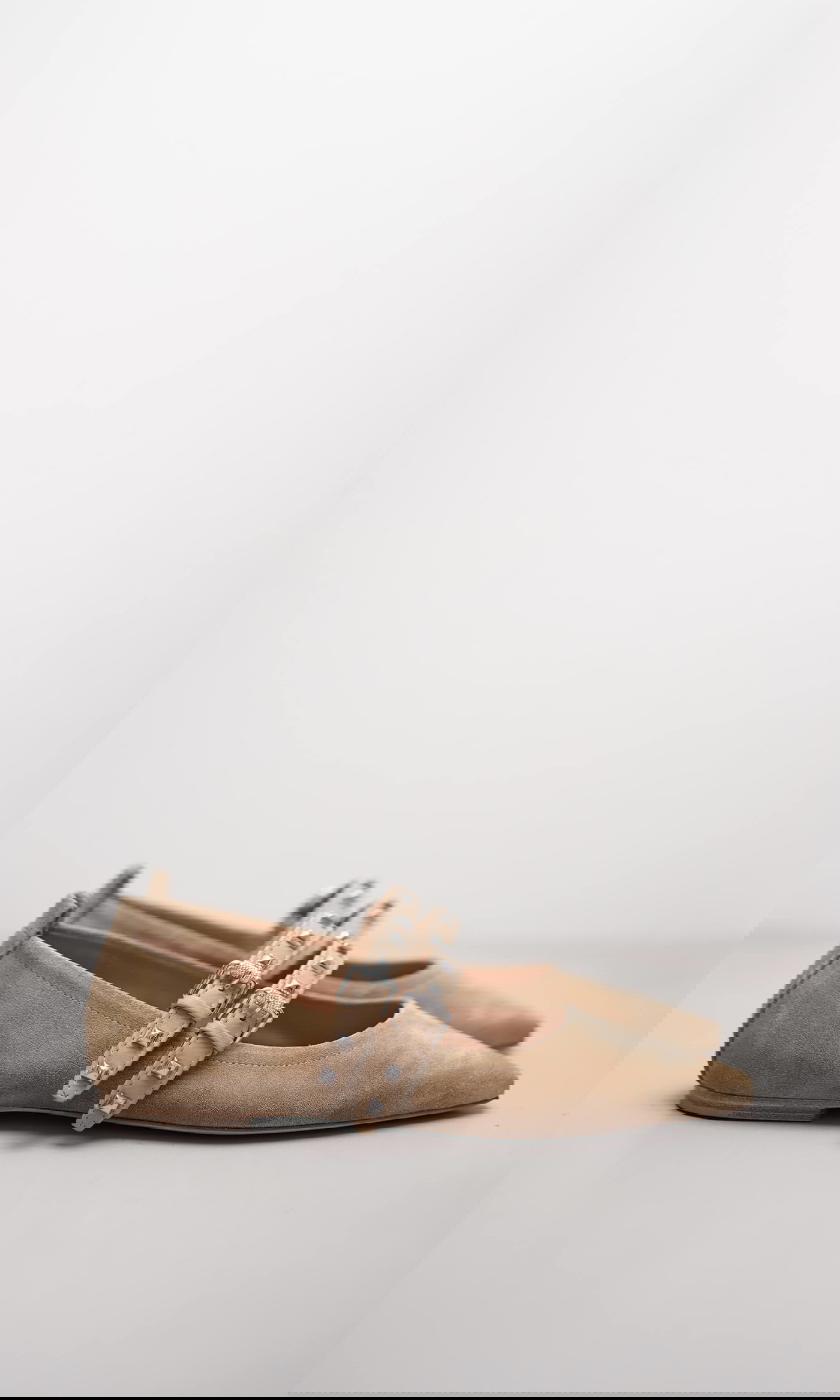 Der Ballerina NIKA vereint feminine Eleganz mit einem modernen Edge. Das Modell aus weichem Veloursleder in einem natürlichen Beigeton wird durch zwei überkreuzte Riemen aus glattem Leder mit silberfarbenen Nieten veredelt. Die spitz zulaufende Form sorgt für eine elegante Silhouette, während die flache Sohle hohen Tragekomfort bietet. Ein stilvoller Begleiter für City-Looks und besondere Anlässe.