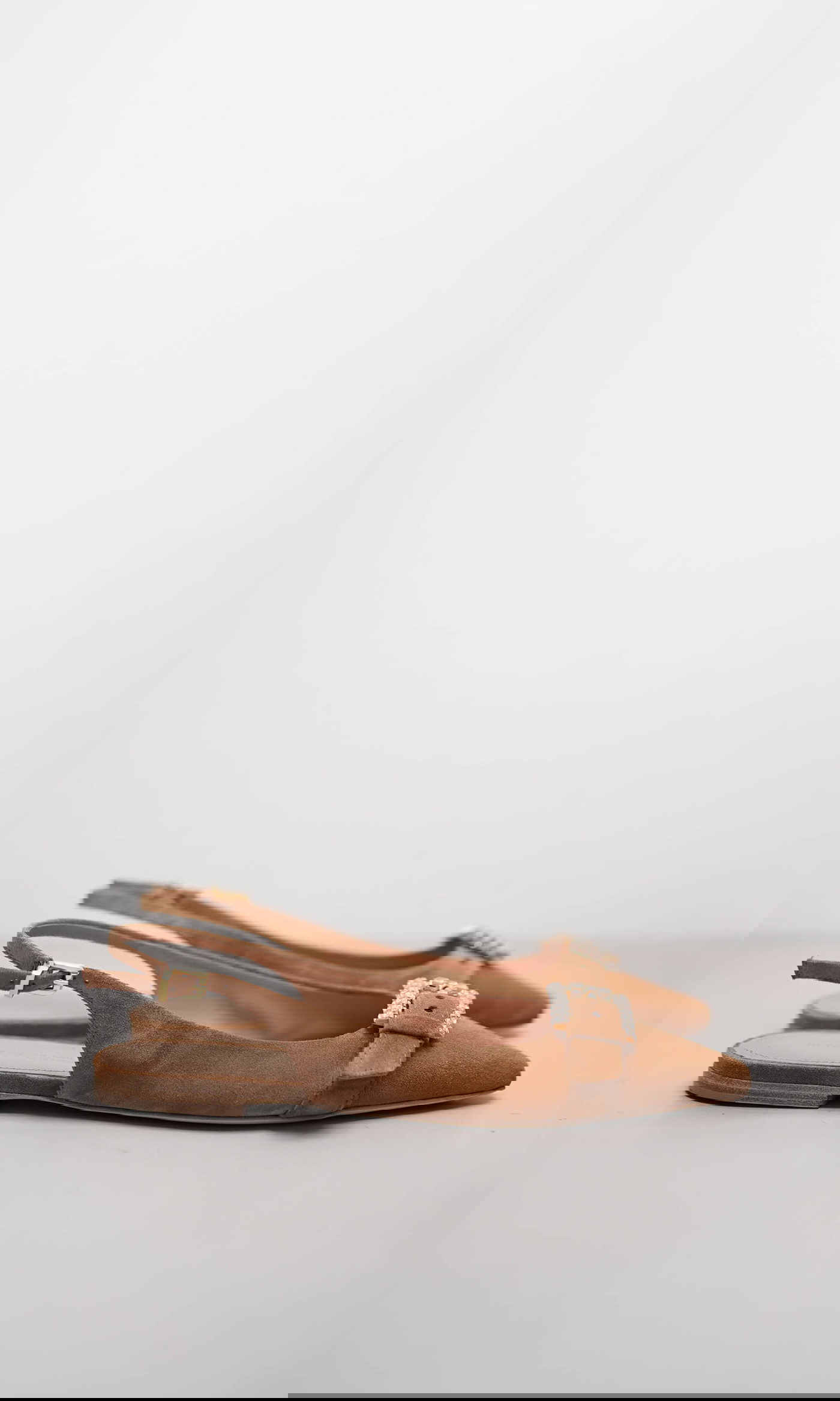 Der Sling-Ballerina NIKA zeigt sich in elegantem Golden Brown aus weichem Veloursleder. Die funkelnde Schmuck-Schnalle verleiht dem spitzen Design eine feminine, edle Note und macht den Schuh zu einem stilvollen Highlight für vielerlei Anlässe. Dank des verstellbaren Fersenriemens sitzt der Ballerina angenehm am Fuß, während die flache, flexible Sohle hohen Tragekomfort bietet. Ein vielseitiger Begleiter, der sowohl zu eleganten Outfits als auch zu modernen Alltagslooks harmoniert.