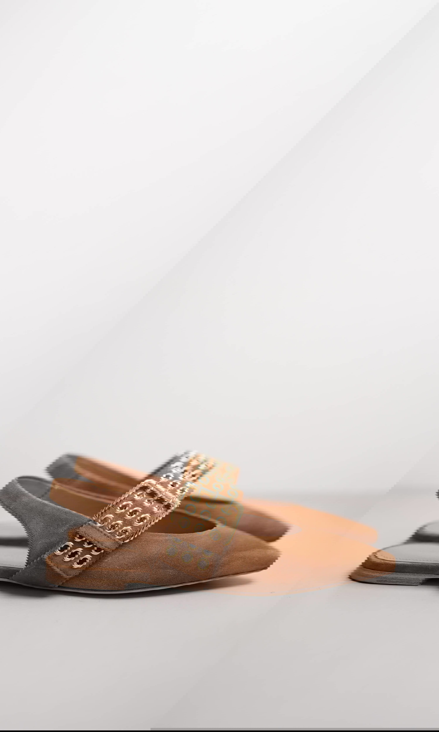 Der Sling-Ballerina NIKA präsentiert sich in warmem Golden Brown aus weichem Veloursleder. Die markante, goldfarbene Schnalle mit dekorativen Ösen setzt einen modischen Akzent und verleiht dem spitzen Design eine moderne, leicht extravagante Note. Der verstellbare Fersenriemen sorgt für optimalen Halt, während die flache, flexible Sohle ein angenehm leichtes Tragegefühl bietet. Ein vielseitiges Modell, das sowohl elegante Looks als auch lässige Outfits stilvoll ergänzt.