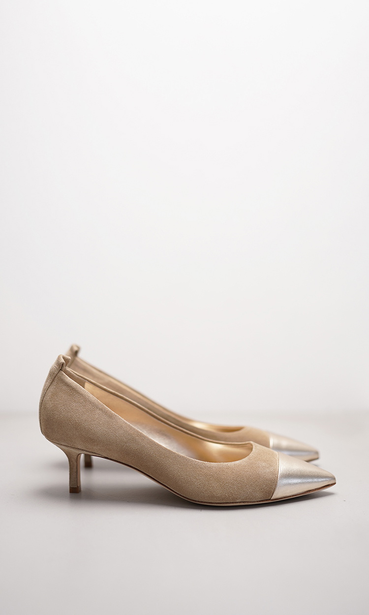 Highlight der neuen Saison sind unsere aufregenden Pumps RICO. Durch das hochwertige Veloursleder im zeitlosen hellbraun lässt sich das Modell völlig unkompliziert kombinieren. Die akzentreiche Zehenkappe sorgt zusätzlich für einen modischen Kontrast. Der halbhohe Absatz verlängert gekonnt Ihre Beine und zaubert eine feminine Silhouette. Haben Sie noch viele weitere Saisons Freude an diesem charmanten Modell.