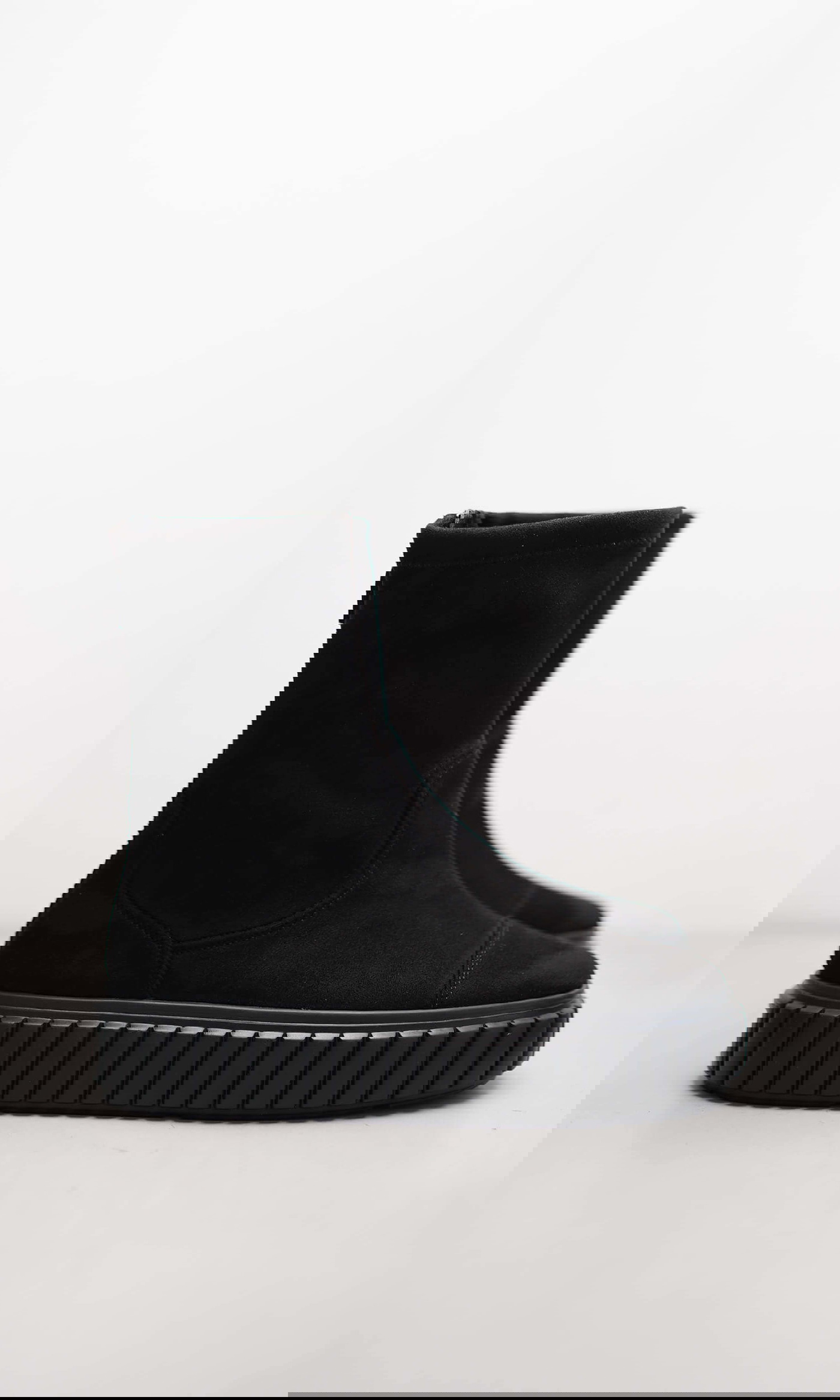 Diese moderne ZAP Stiefelette überzeugt durch ihre klare Silhouette und ihr edles Understatement. Das elastische Vellutato-Stretchmaterial in tiefem Schwarz schmiegt sich elegant an das Bein und sorgt für eine schlanke, komfortable Passform mit sockenähnlichem Sitz. Die tonige Sneakersohle in Schwarz verleiht dem Modell eine sportlich-urbane Note und sorgt für einen angenehmen Auftritt mit leichtem Tragegefühl. Der monochrome Look macht die Stiefelette zu einem vielseitigen Allrounder, der sich mühelos in jede moderne Garderobe einfügt – von casual bis chic.