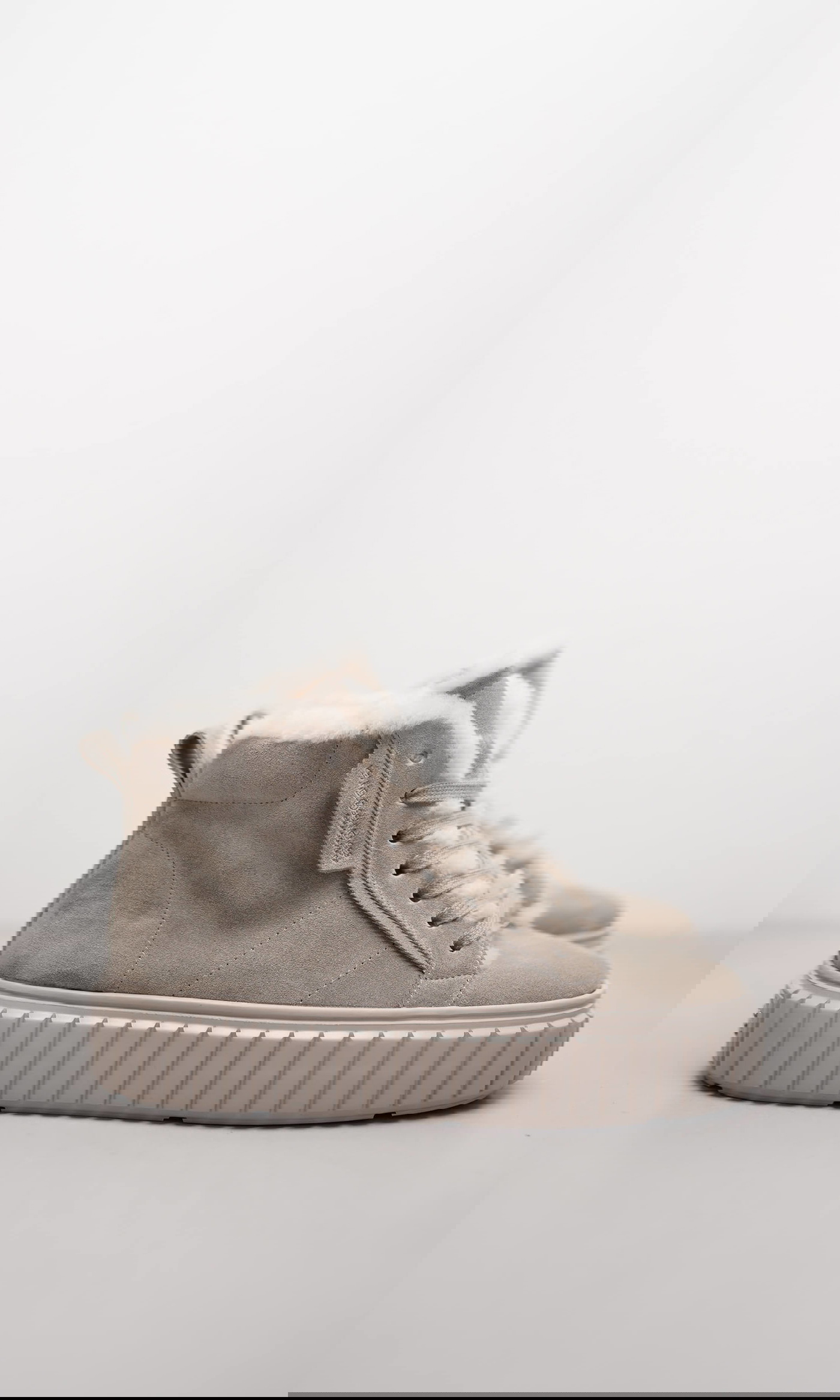 Schlicht, edel und wunderbar soft: Dieser Hightop Sneaker ZAP präsentiert sich in einem modernen Ton-in-Ton-Look in edlem Graubeige – von der lässigen Veloursleder-Oberfläche über das flauschige Lammfellfutter bis hin zur farblich abgestimmten Sohle. Ein stilvoller Allrounder, der Wärme und Design auf harmonische Weise verbindet. Das durchgängige Farbkomzept verleiht dem Schuh eine ruhige, luxuriöse Ausstrahlung, die sich vielseitig kombinieren lässt – von minimalistischen City-Looks bis hin zu entspannten Casual-Outfits. Die hochwertige Verarbeitung, die Hightop-Silhouette und das wärmende Innenfutter sorgen für maximalen Komfort auch an kühlen Tagen.
