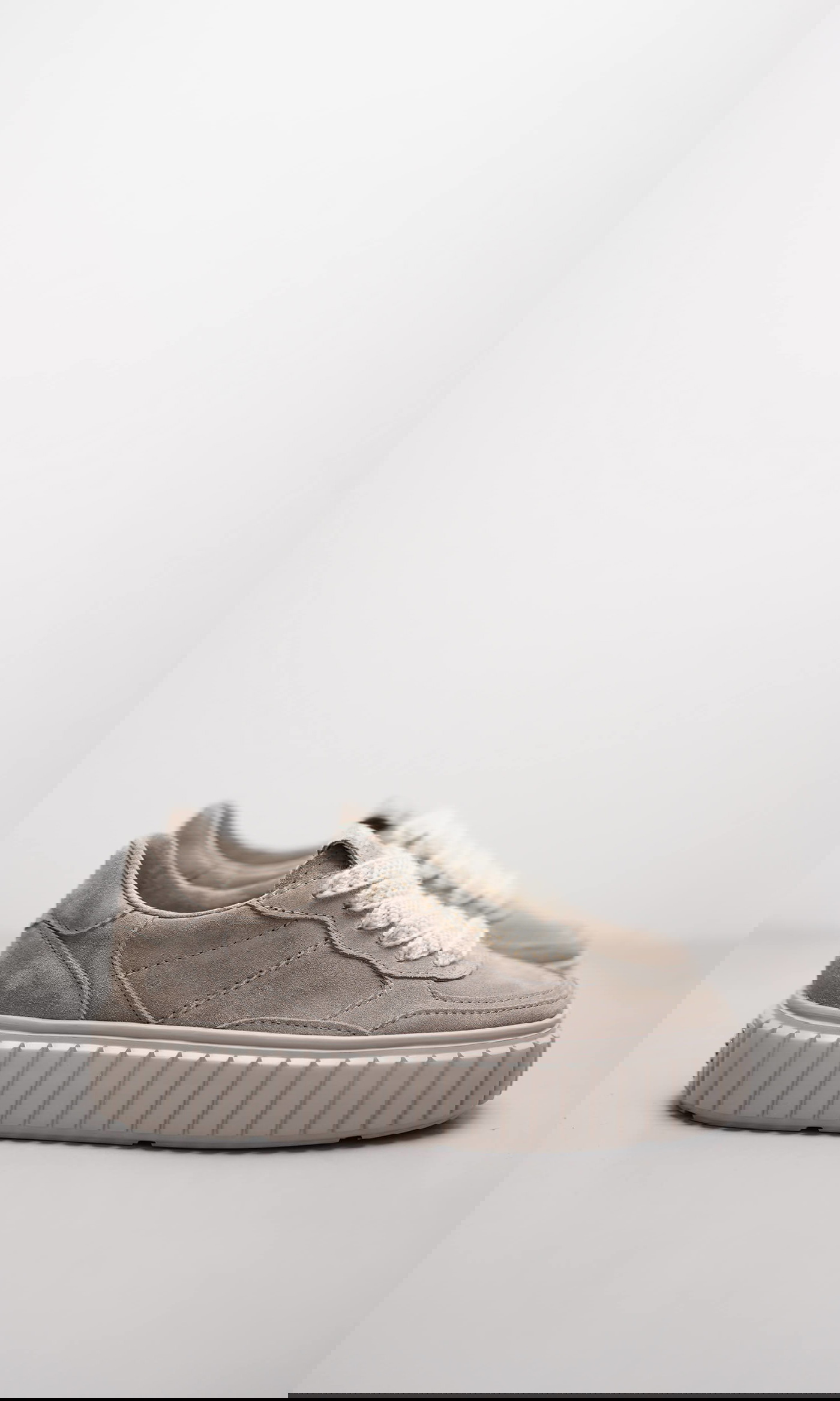 Dieser ZAP Sneaker verbindet lässige Eleganz mit feinster Handwerkskunst. Das Obermaterial aus softem Veloursleder in einem stilvollen Graubeige verleiht dem Schuh eine dezente, dennoch markante Ausstrahlung. Die tonige Sohle unterstreicht den monochromen Look und sorgt für ein harmonisches Gesamtbild. Ein besonderes Detail sind die naturfarbenen, gestrickten Senkel, die dem Sneaker einen modernen, leicht sportiven Touch geben und gleichzeitig für einen angenehmen Sitz sorgen. Perfekt für urbane Outfits, die Wert auf Understatement legen.