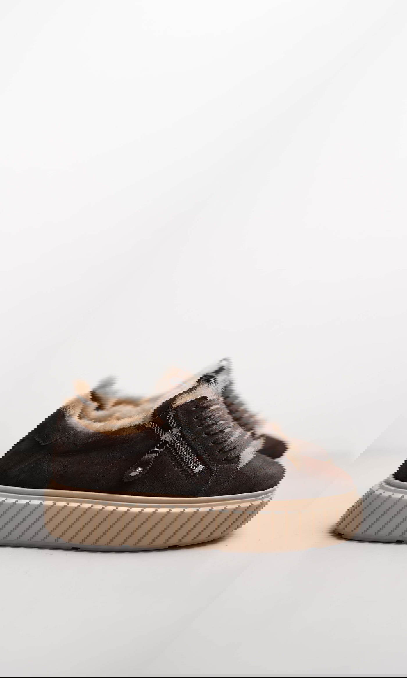 Dieser edle ZAP Sneaker in dunkelbraunem Veloursleder vereint dezente Eleganz mit kuscheligem Tragekomfort. Das hochwertige Lammfellfutter in warmem Camel-Ton sorgt nicht nur für wohlige Wärme an kühlen Tagen, sondern setzt auch einen stilvollen Akzent in Inneren des Schuhs. Abgerundet wird das Design durch die farblich abgestimmte Sohle, die den harmonischen Look unterstreicht. Ob zur Jeans oder zur eleganten Stoffhose – dieser Sneaker ist der perfekte Begleiter für stilbewusste Frauen, die Wert auf Qualität und Komfort legen.