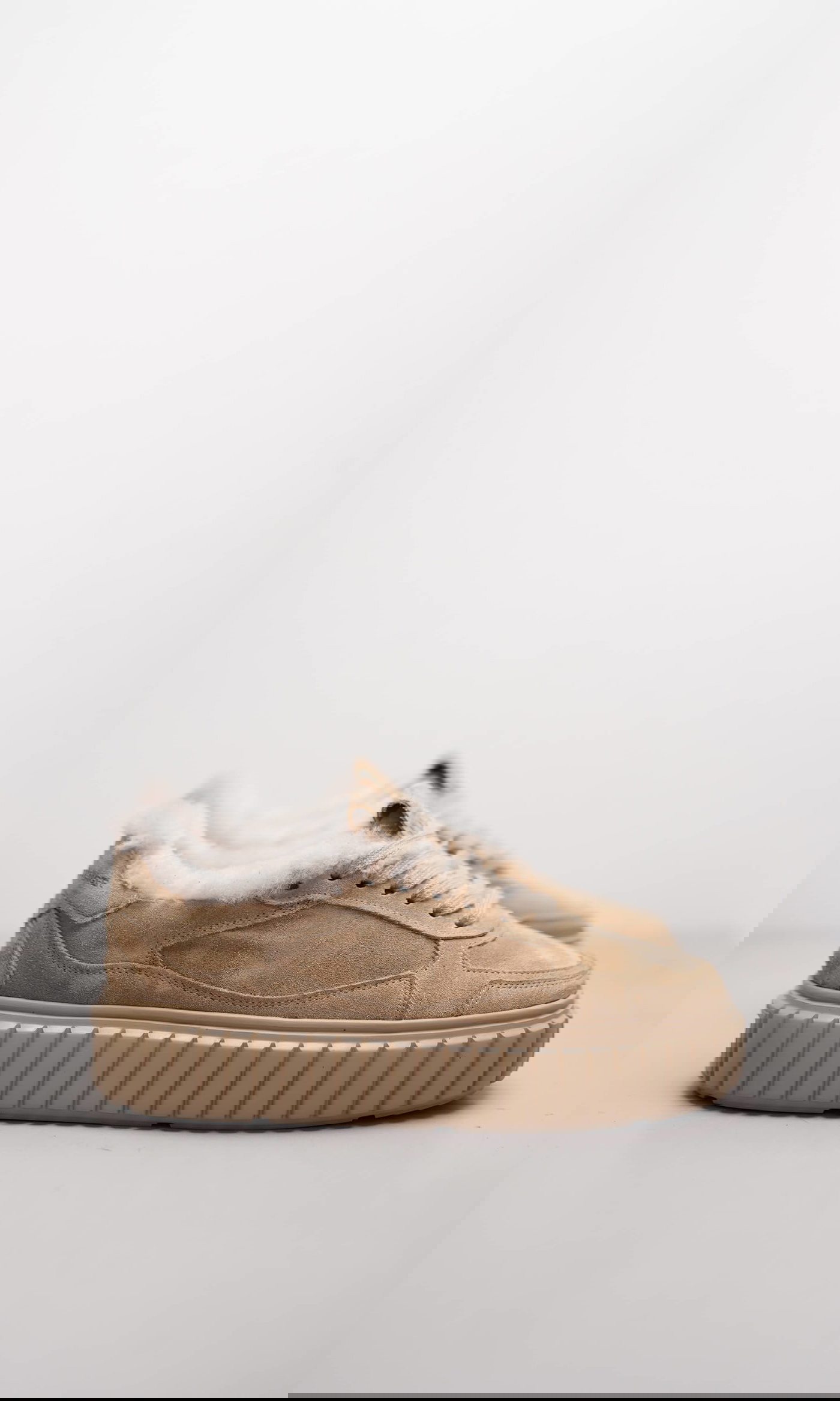 Dieser lässige Low-Cut Sneaker überzeugt durch seine klare Linienführung, dezente Details und höchsten Tragekomfort. Gefertigt aus weichem Veloursleder in Hellbraun zeigt er sich in einem zeitlosen Look mit feinen Ziernähten, die dem Design eine handwerkliche Note verleihen. Innen sorgt ein Futter aus echtem Lammfell für wohlige Wärme und ein angenehm weiches Tragegefühl – ideal für kühlere Tage. Die flache Silhouette macht den Sneaker zum vielseitigen Allrounder für urbane Looks, der sich mühelos kombinieren lässt.